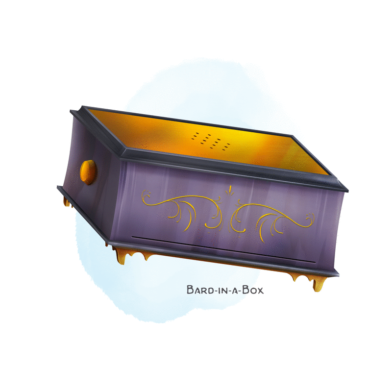This small music box can play songs at the request of the holder. As a bonus action, you can command the box to play a song for which it has music, causing the contraption to emit a slightly tinny rendition of the musical number. The box can know up to 5 songs at a time but can’t recreate lyrics or other creature sounds. The box has a knob on its side to adjust its volume: able to be as quiet as a whisper or as loud as a scream.