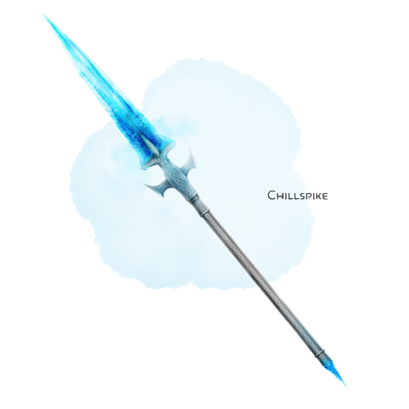 This cold steel weapon from the Everglacier is topped with a menacing ice spike that never melts. You gain a +1 bonus to attack and damage rolls made with this magic weapon. The pike deals an extra 1d10 cold damage to any target it hits. In addition, attacks with this weapon and its properties ignore resistance to cold damage.