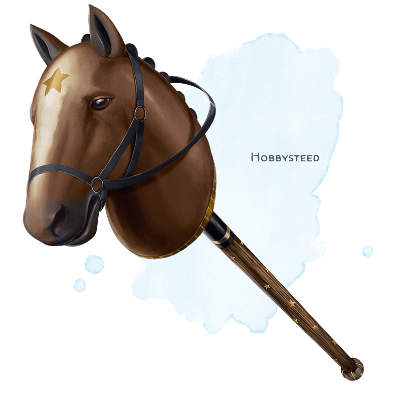 While holding this stuffed hobby horse, which weighs 2 pounds, you can mount or dismount it as if it were a normal steed. While mounted, you can use an action to speak its command word: a ghostly steed then appears beneath you, which is translucent and obviously magical. The steed uses the statistics for a riding horse, although its weight is always 2 pounds. You can ride it for up to 1 hour, all at once or in several shorter intervals, each one using a minimum of 1 minute from the duration. The hobbysteed regains 30 minutes of riding capability for every 4 hours it isn't in use. The effect ends early if you or the steed take any damage or if you're no longer holding or riding the hobby horse.