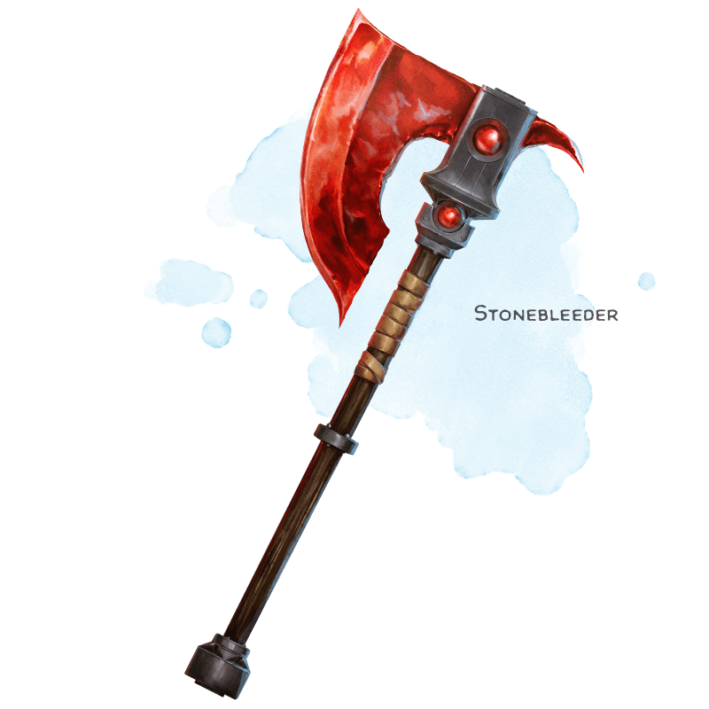 You gain a +2 bonus to attack and damage rolls with this magic axe, which looks to be made of red crystal. Whenever the axe hits an object or structure made of stone, the hit is a critical hit.